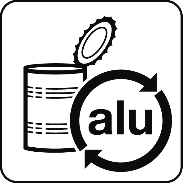 Alu, boîte conserve, fer blanc Canettes de boisson, boîtes de conserve, feuilles d'aluminium, couvercles de yoghourts, tubes de mayonnaise/dentifrice, barquettes de cuisson, aérosols vides (sans symboles de danger).
